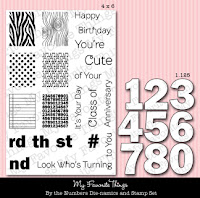 I stamped my little guy on a panel cut with the new Rectangle STAX. Behind the image I've used a panel cut from the Designer Label 1 STAX - I can NOT put these down! I curved my sentiment before stamping on the Mini Tab Die-namics. By the Numbers provided the perfect accent for this boyish card.