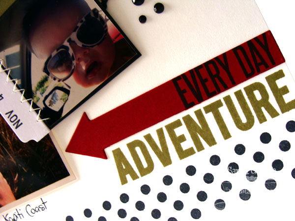 I liked the idea of an "everyday adventure" - any outing with an infant turns into an adventure! This layout captures Jackson's first visit to a nearby coast. I stamped the Everyday from Expand Your View on an arrow from Lead the Way.