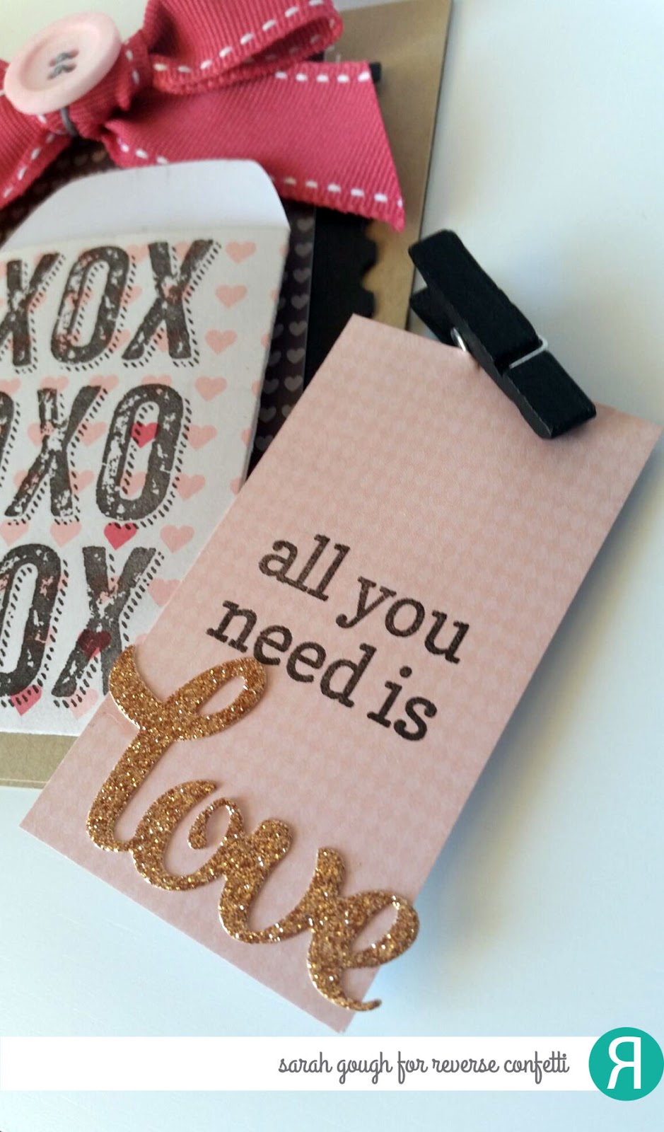 I went lovey with my project today using the Lovey Words and Lovey Word Coordinates Confetti Cuts as well as the Double Heart Garland Confetti Cuts from the January release. I've filled the box with some of my hubby's fave candy bars.